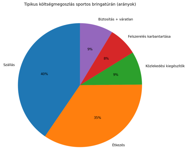 Hogy gyorsan átlátható legyen, mire megy el a pénz egy sportos túrán, az alábbi ábra összefoglalja a tipikus költségarányokat.